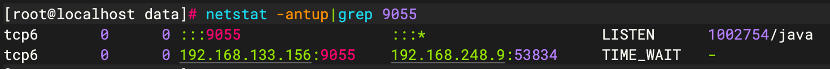 `netstat -antup | grep 9055`
